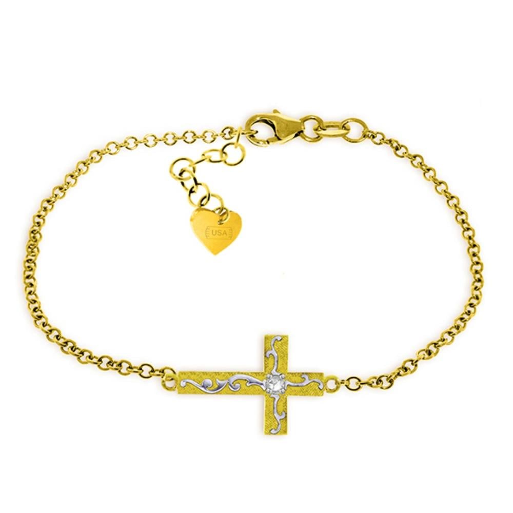 14K SOLID GOLD CROSS BRACELET WITH NATURAL DIAMOND (Yellow Gold)